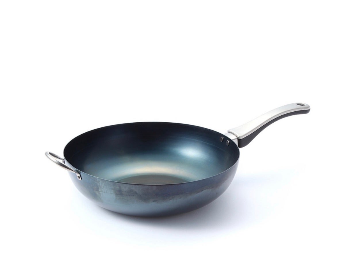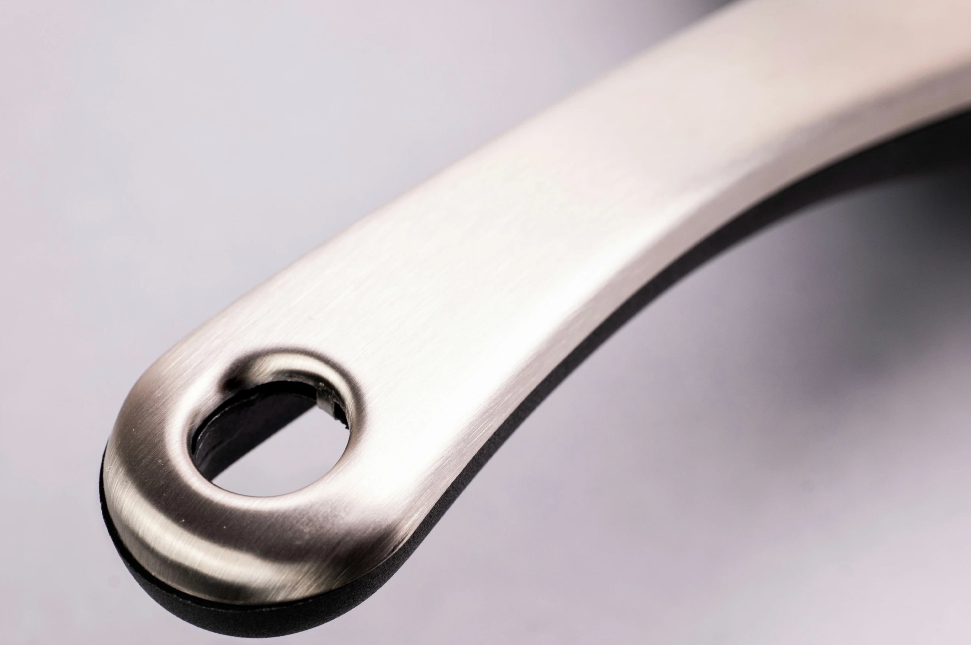 ステンレスと樹脂の混合ハンドルにより、熱が伝わりにくく、手に馴染みやすいデザイン。