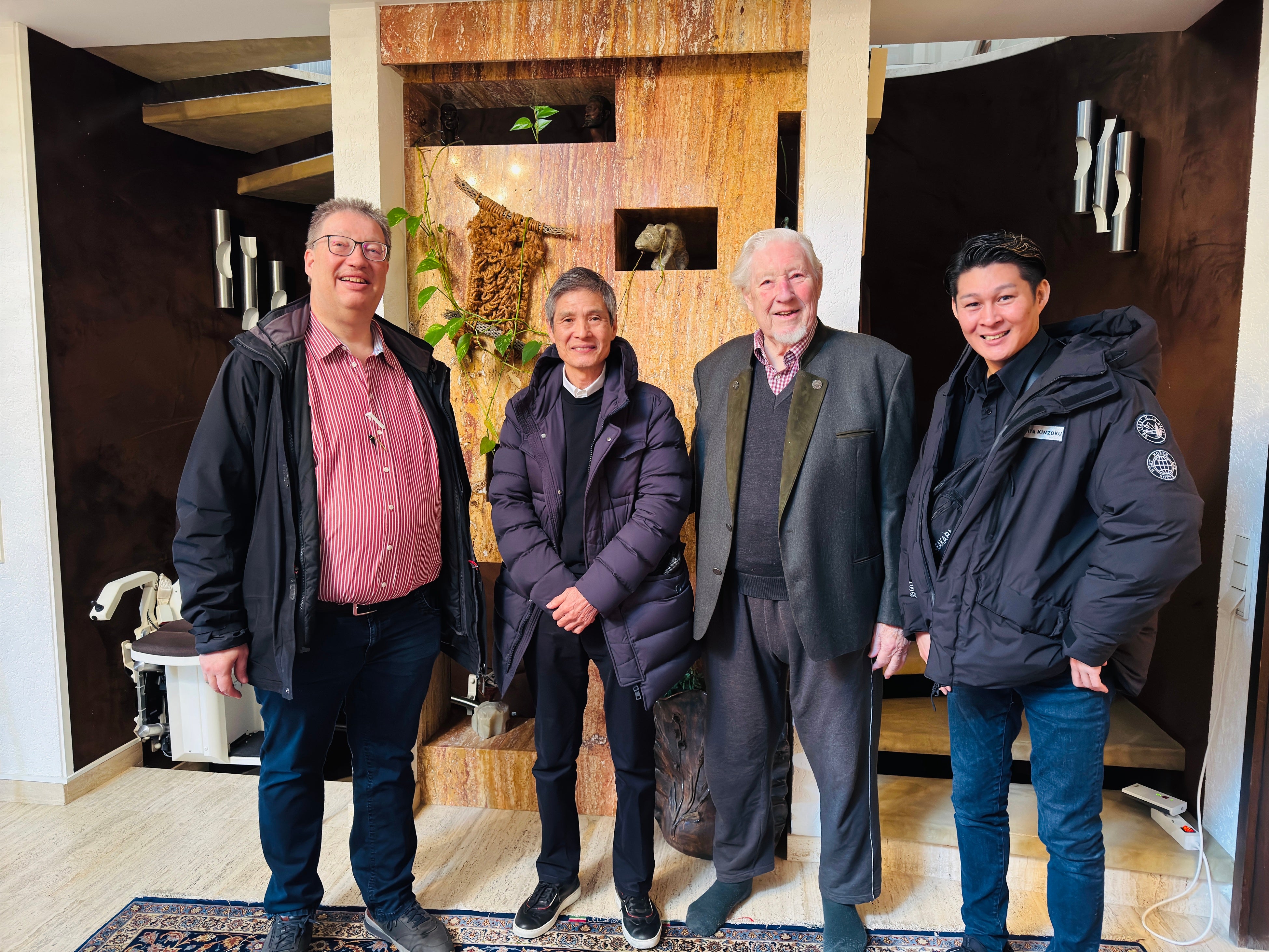 2025年 ドイツハンドルメーカーへ訪問(左からハンドルメーカー社長、弊社前会長、ハンドルメーカー会長、弊社社長)