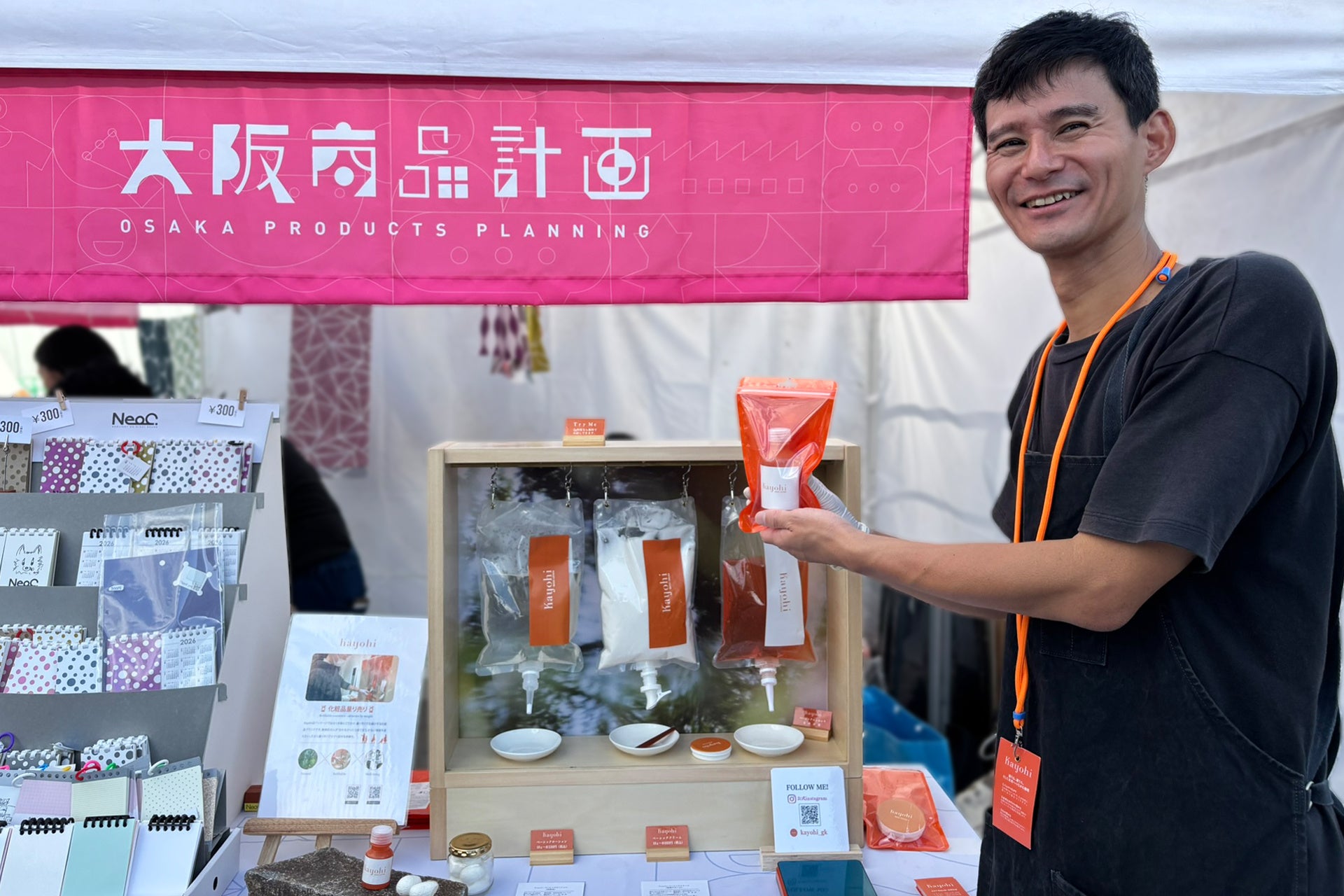 Kayohi合同会社(大阪市淀川区)は、2025年10月13日(月・祝)に開催された「北浜蚤の市」において、大阪商品計画 OB企業3社による合同ブースの一員として出店し、量り売り化粧品の展示・販売を行いました。
