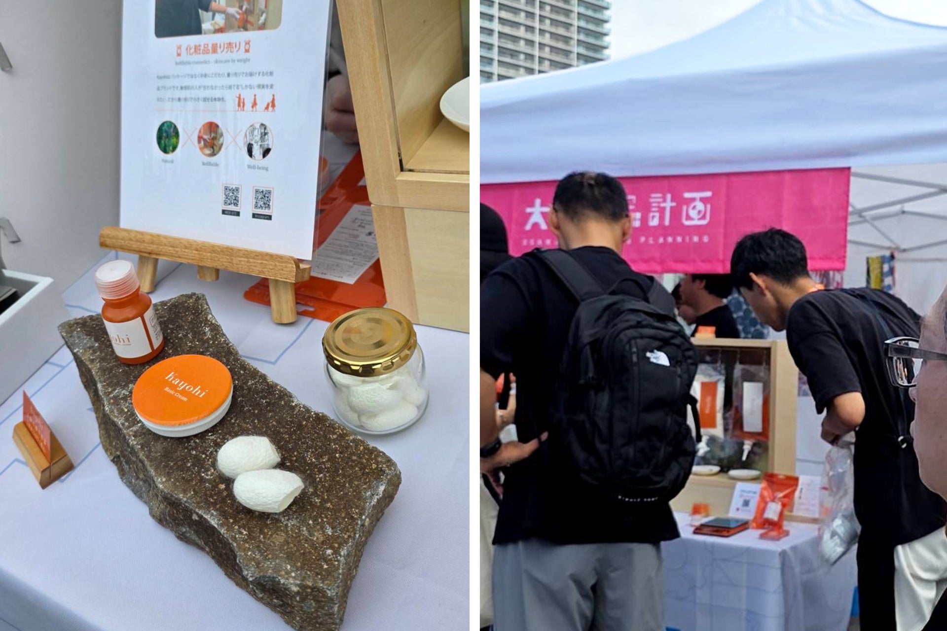 当日は秋晴れに恵まれ、前日の雨を忘れるほどの心地よい気候の中、多くの来場者で賑わいました。Kayohiのブースでは、シルク由来の敏感肌向け基礎化粧品を“10g単位”から量り売りするというスタイルに驚きの声が多く寄せられ、「面白い」「この発想は初めて」といった反応をいただきました。お客様と直接対話を重ねながら、“通いの文化”を感じるあたたかな交流の場となりました。