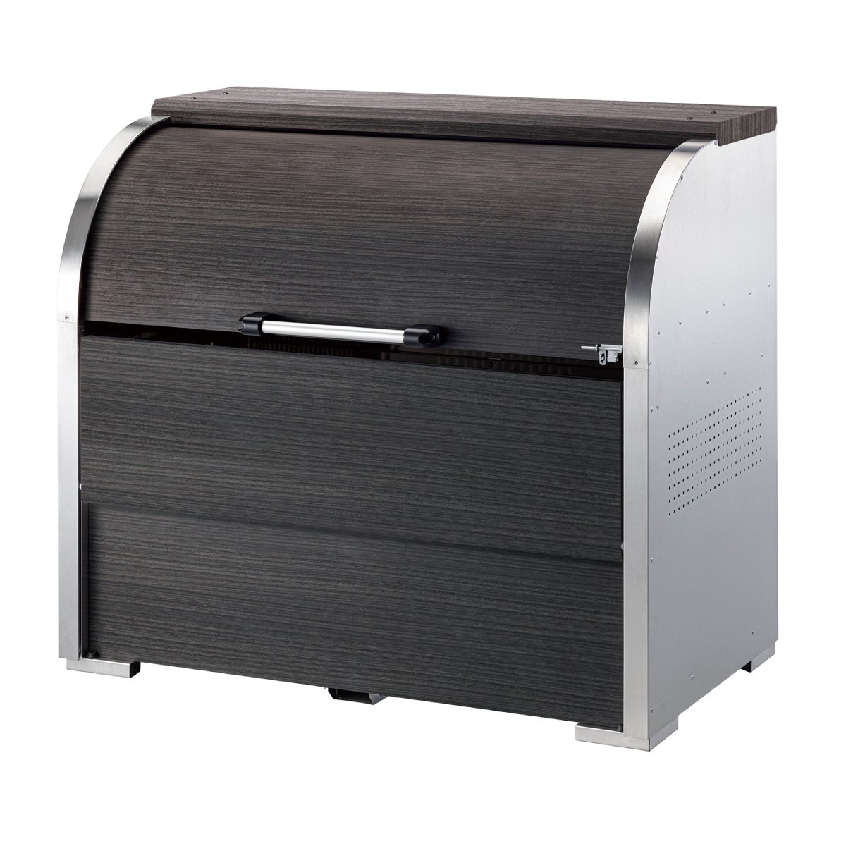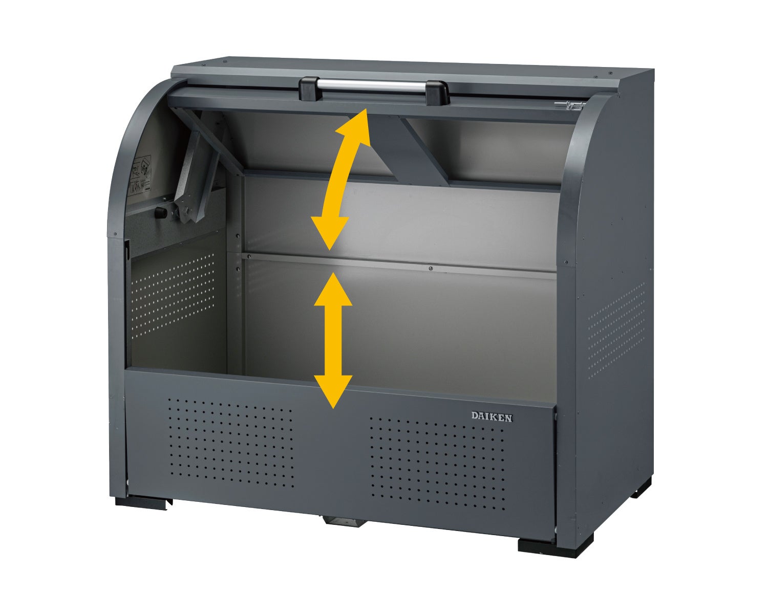 材質は、耐久性に優れた「高耐食溶融めっき鋼板製」。上扉の開閉機構には開閉音が静かになるロータリーダンパーを搭載し、ダンパー非搭載時と比べた場合に扉の開閉音が約25%低減されます。