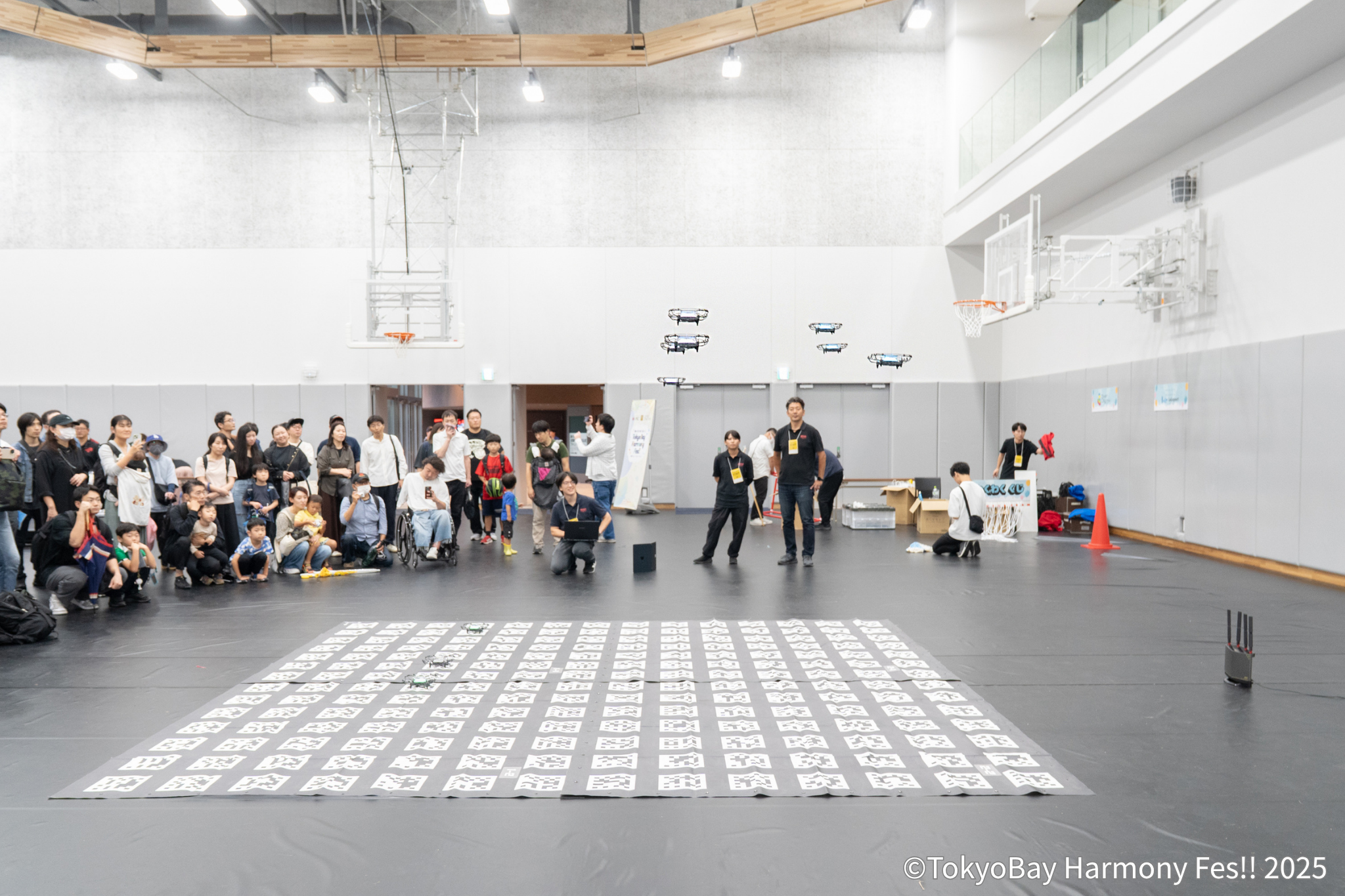 レッドクリフによるドローンプログラミング体験では、飛行ルートや高度を自分で設計し、空へと飛ばす本格体験が大人気!ドローンを上手く飛行させるための計算式に悩みながら挑戦。プログラム最後にはミニドローンショーを開催し、光をまとい舞い上がるドローンの機体に、歓声と拍手は最高潮に。