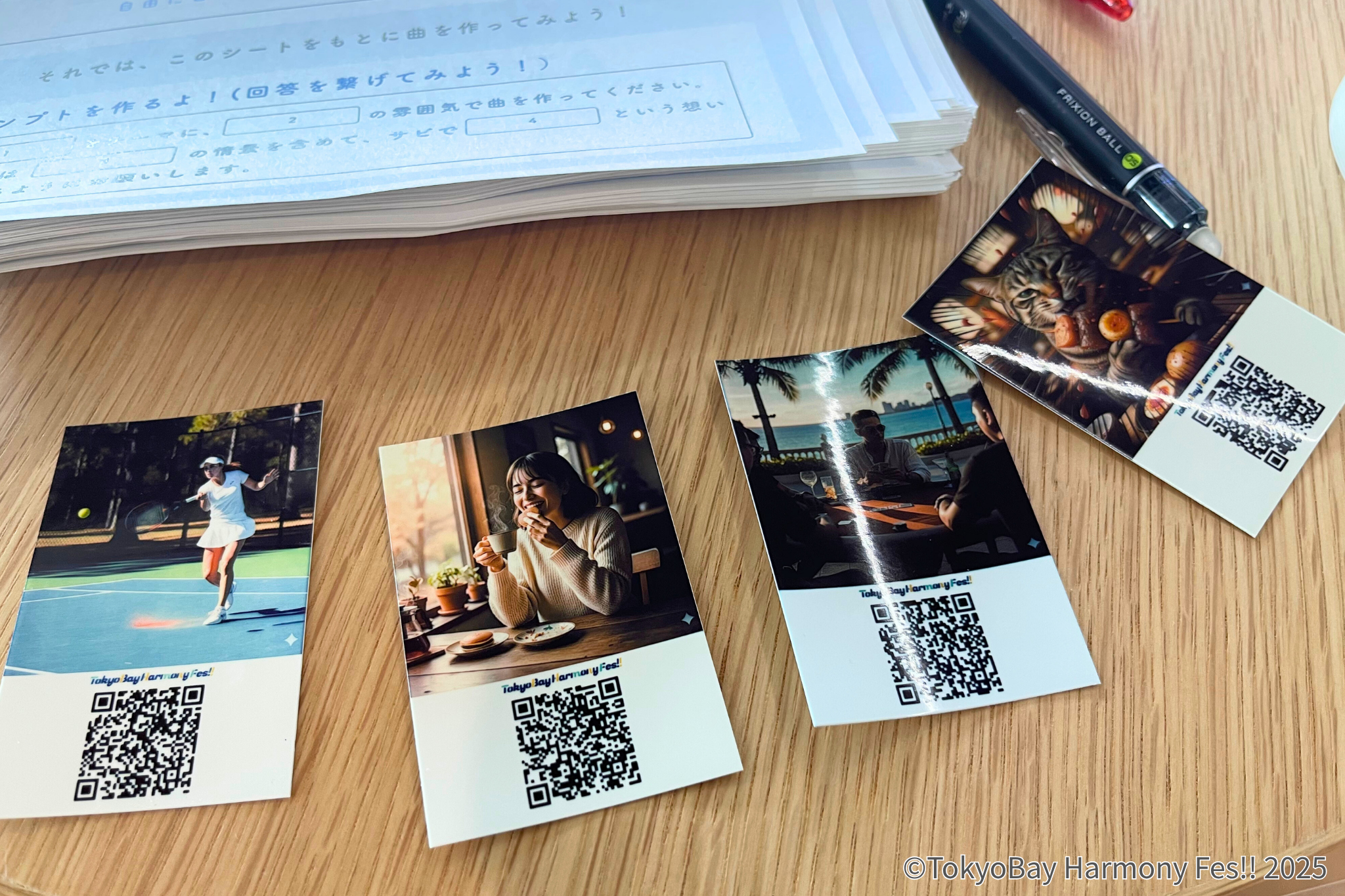 最新の生成AIツールを使って、子どもたちのアイディアからオリジナル楽曲とジャケット写真を制作。