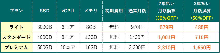 『見えるスペック×安定稼働×長期割引で最大50%OFF(月額485円~)』により、これまで以上にコストパフォーマンスが高くなったことで、更にご利用いただきやすくなりました。