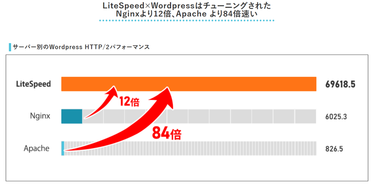 Litespeedは、高性能なPHP処理エンジンと独自のキャッシュ機構を備え、並行処理能力に優れることで、アクセスが集中しても安定した高速なウェブサイトを提供できます。