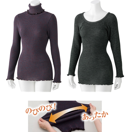 ◆(左)あったかのびのび長袖インナータートルネック ¥4,980(税別)