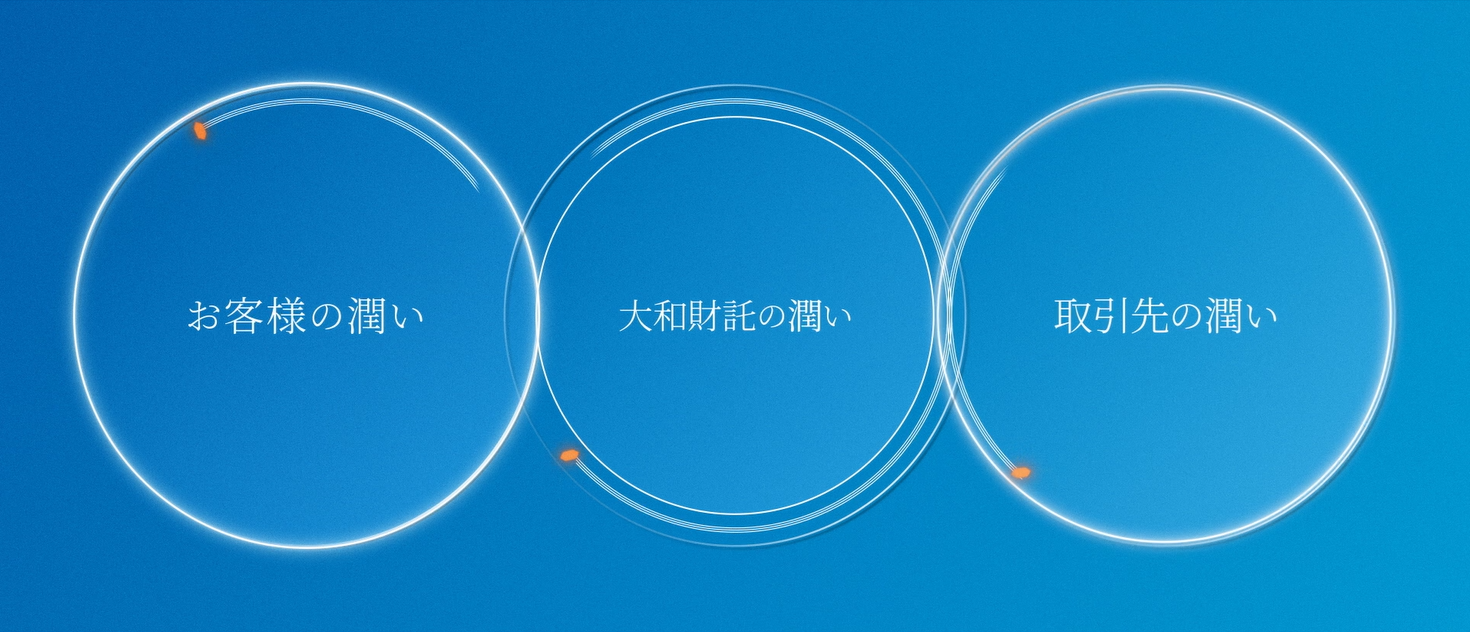 そして当社は今後も、事業を通して顧客・取引先・社員の人生の潤いをどこまでも高め続けます。そして日本国・世界各国のさらなる発展に貢献し、潤いを環(まわ)し続けられるよう誠心誠意取り組んでまいります。