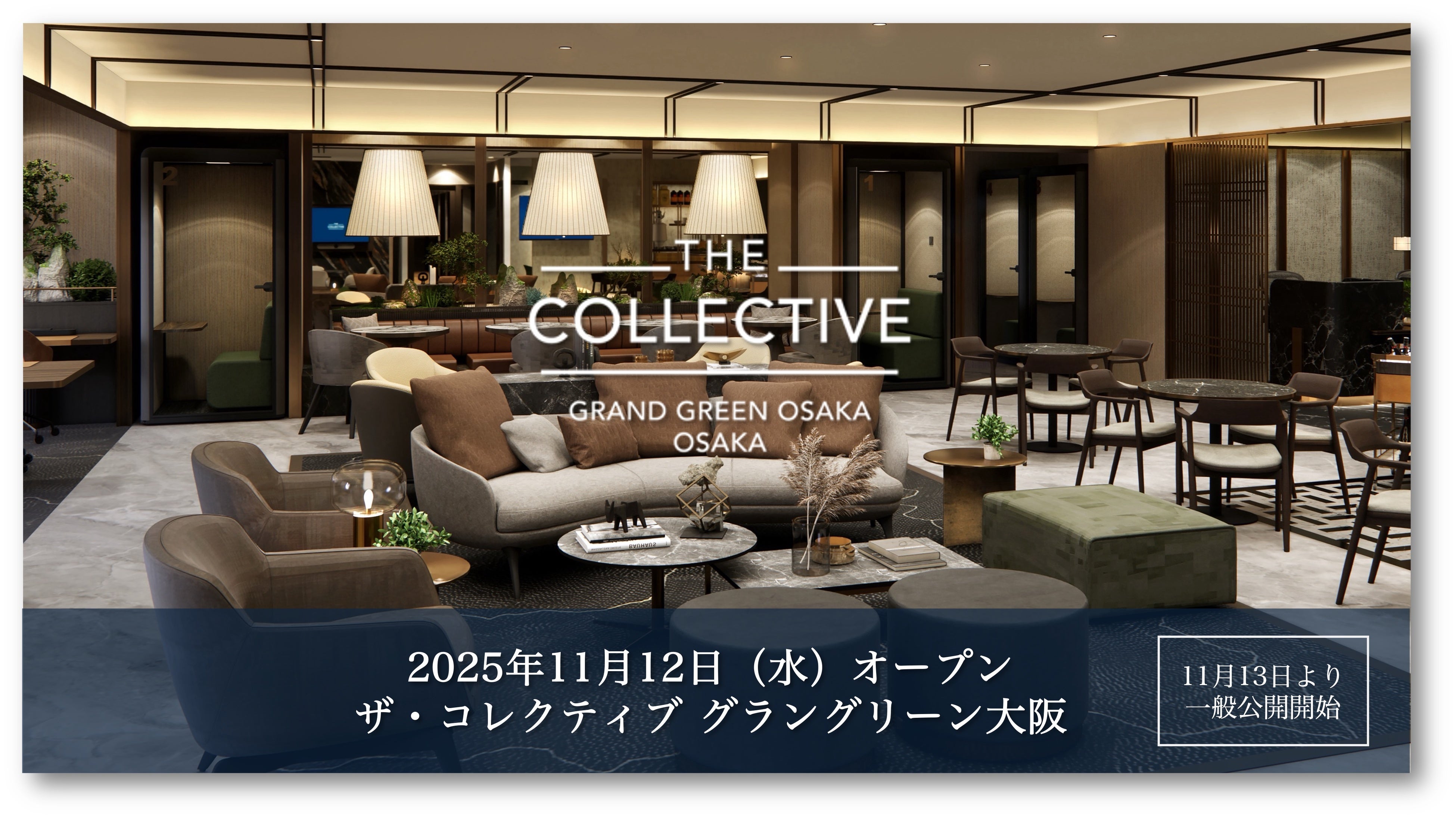 シンガポール発のプレミアムコワーキングブランドのJustCo(ジャストコ)は、卓越したホスピタリティとアメニティを備え、上質を極めたラグジュアリーシェアオフィス、「ザ・コレクティブ グラングリーン大阪」を、2025年11月12日(水)にグラングリーン大阪 パークタワー9階にソフトオープンいたしました。また、本日よりオープン記念の2つのプレミアムキャンペーンを開始し、11月13日(木)より一般公開も開始いたします。