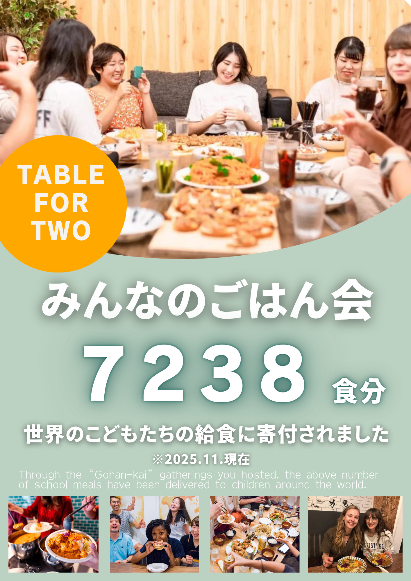 ・累計寄付食数:7,238食(給食支援額:144,760円相当)