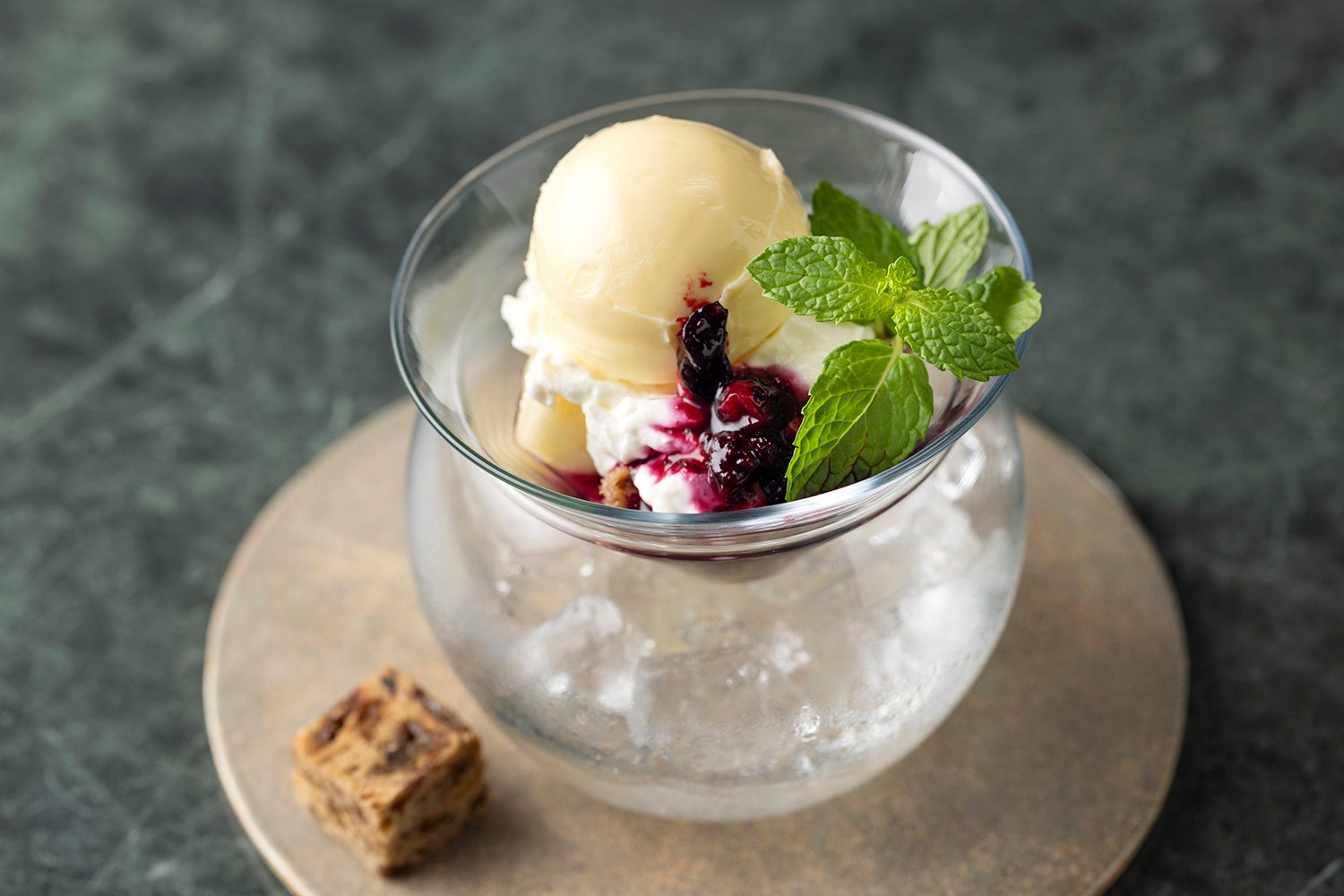 コースのはじまりは、煮しめ入りいなり餅や盛岡駄菓子など、岩手県の郷土料理や味覚を詰め込んだ6種の前菜。温前菜には、希少な赤身が味わえる「いわて短角牛」と芳醇な甘みの脂が魅力の「プラチナポーク」にもち粉をまとわせて焼き、岩塩プレートの上で仕上げてご提供いたします。魚料理では、貝の旨みを感じるだしに餅、雲丹、鮑、つぶ貝、サーモン、わかめなどを入れて魚介鍋仕立てでお楽しみいただきます。メインには、とろける舌触りときめ細かな霜降りが特長の「前沢牛」を、岩手県産の塩や味噌とともにお楽しみください。また、お料理に合わせて岩手県の日本酒やワインも揃えております。