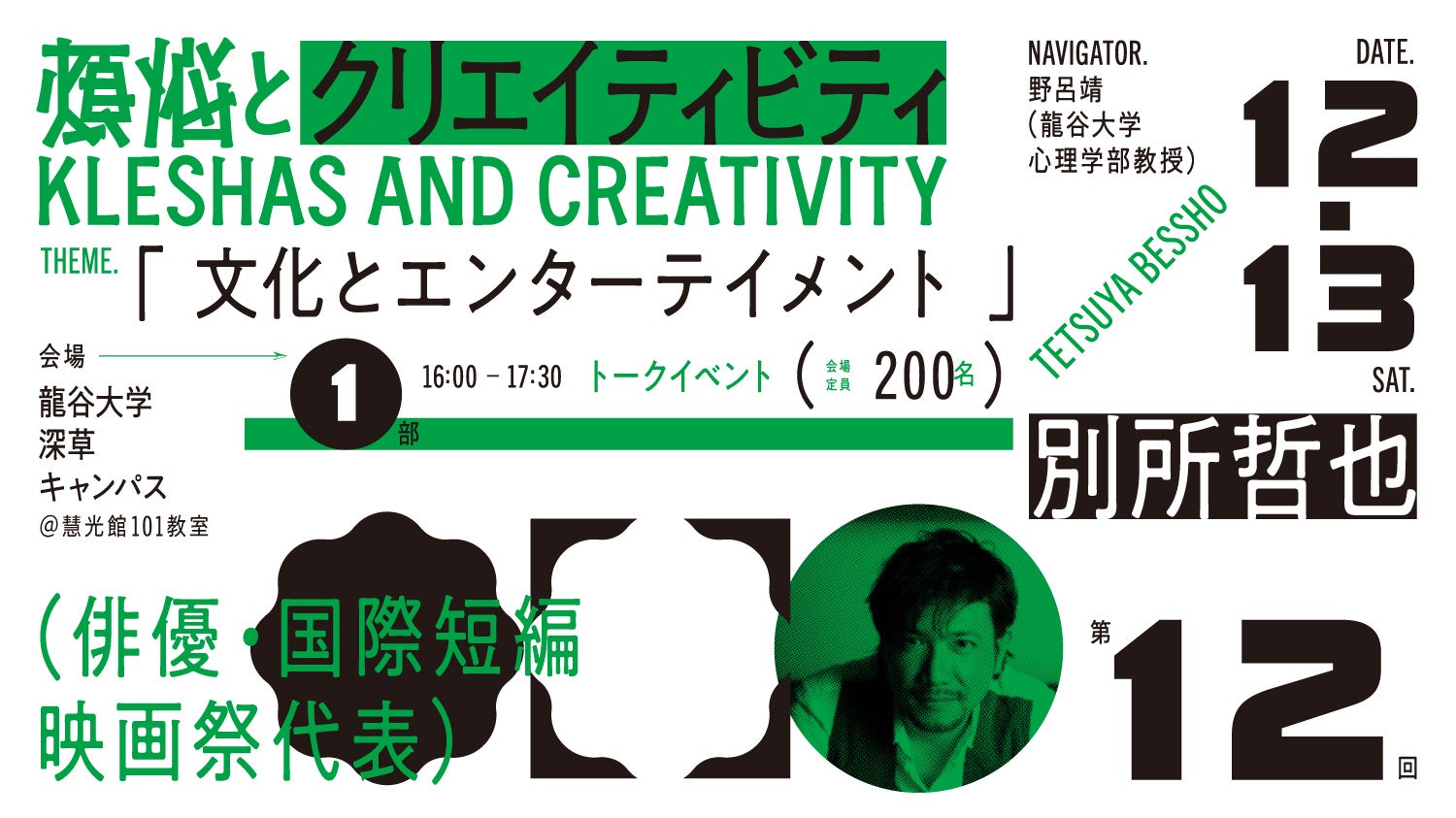 煩悩の創造性を探求するプロジェクト「煩悩とクリエィティビティ」(龍谷大学校友会主催) 12/13(土)は 別所 哲也氏(俳優・国際短編映画祭代表)が登壇 ~文化とエンターテイメント~