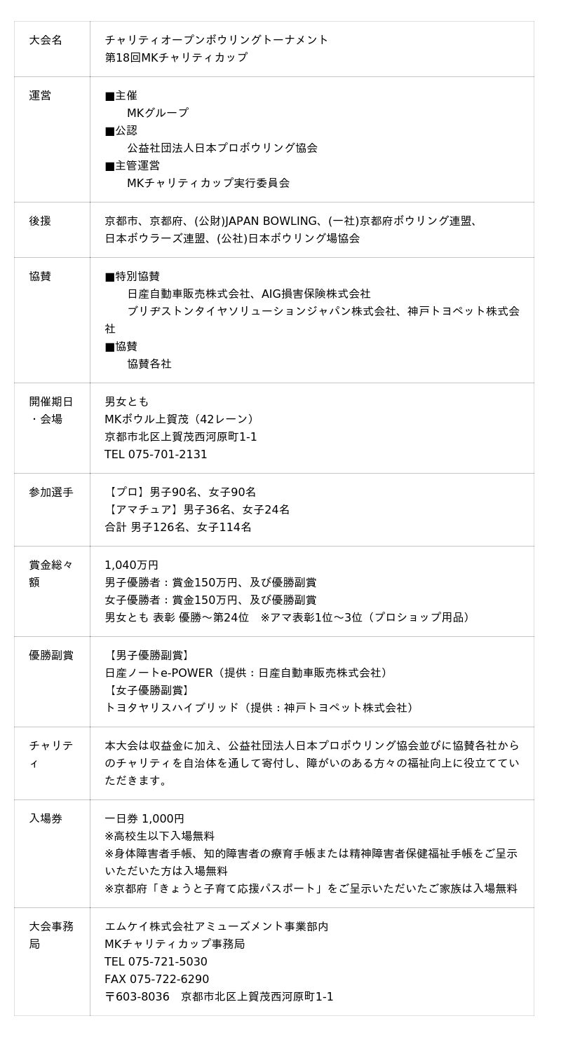 2025年9月11日~13日の3日間、京都市北区のMKボウル上賀茂で「第18回MKチャリティカップ」が開催されました。第18回MKチャリティカップの大会概要は、