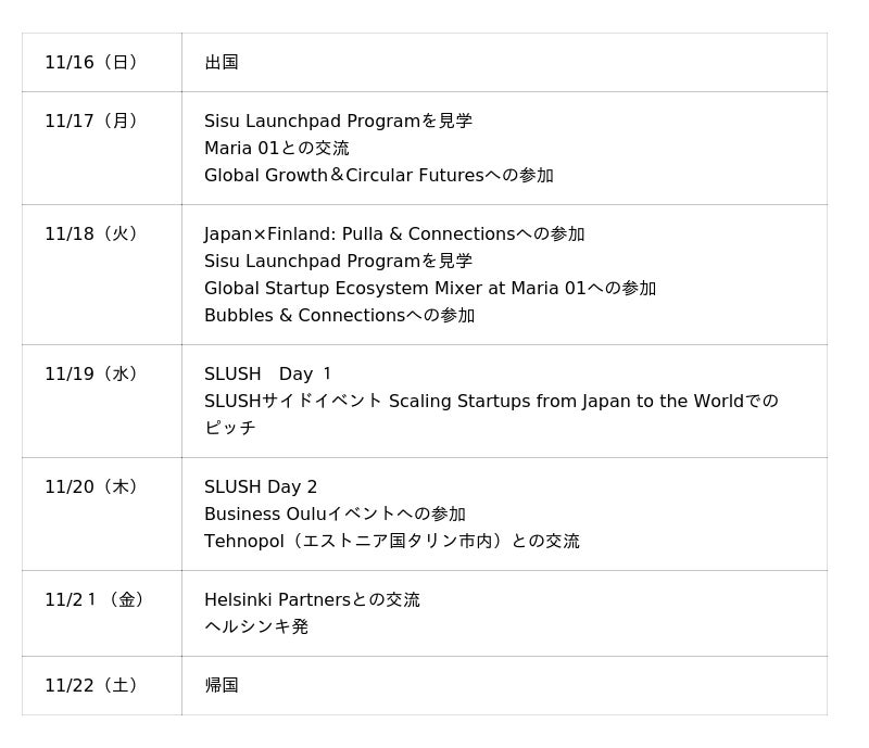 内 容:SLUSHへの参加:ミーティング、ステージプログラム、サイドイベント、ブース見学