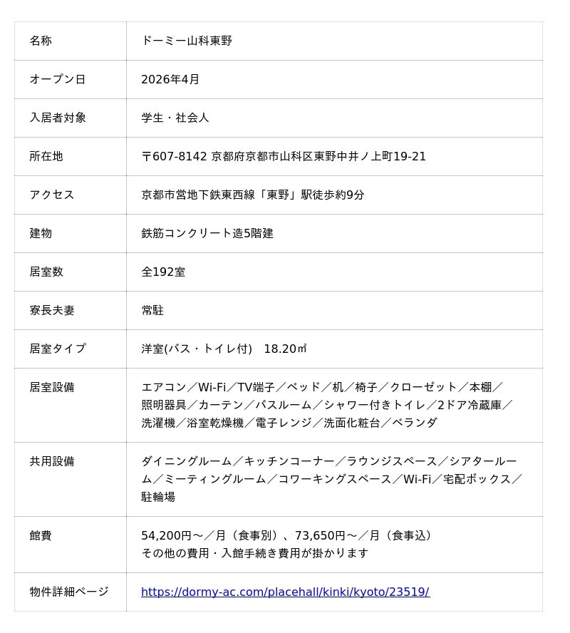 「ドーミー山科東野」公式WEBサイト:https://dormy-ac.com/placehall/kinki/kyoto/23519/