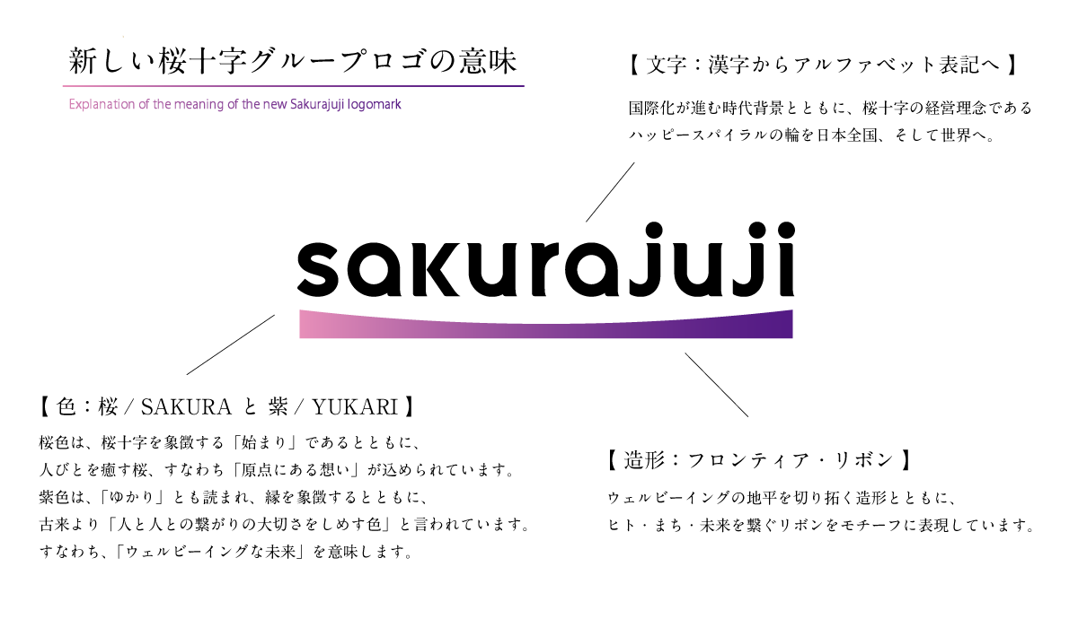 グローバルな展開と認知拡大を見据え、グループ名称の表記を、従来の日本語表記「桜十字」から、アルファベット表記の「sakurajuji」へと変更します。